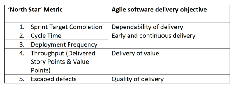 The ‘North Star’ metrics were carefully selected to be meaningful when aggregated and illustrative of effective Agile software delivery.
